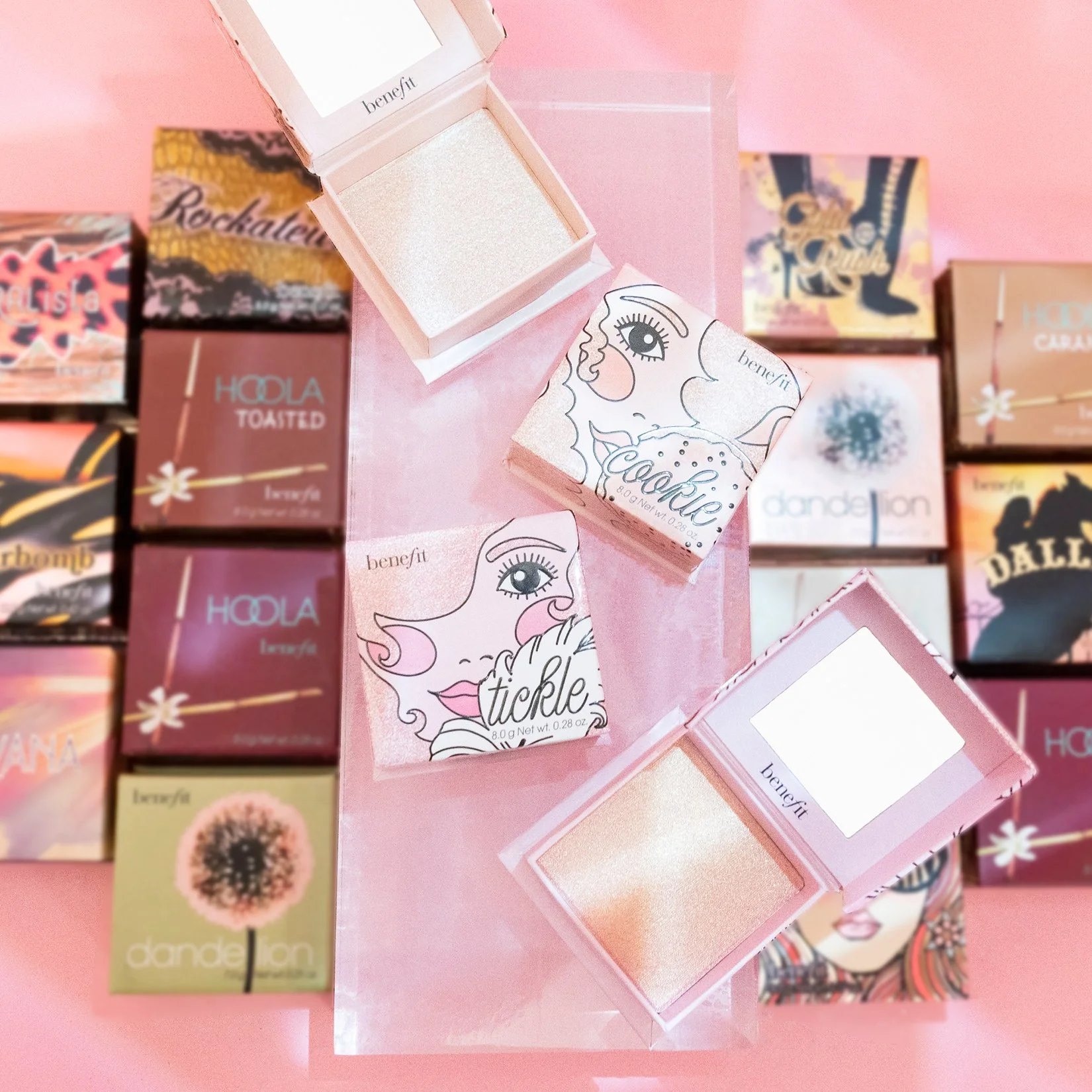 Tickle & Cookie are high-payoff powder highlighters that are part of Benefit Cosmetics’ iconic cheek color collection. I focused in on Benefit's quirky DNA and spirit of sisterhood to design these boxes while keeping the illustrations representative of the names Cookie & Tickle.